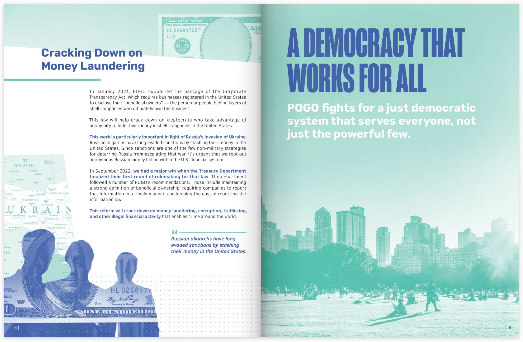 In 2022, the Project On Government Oversight divided its traditional Annual Report into two, half-yearly Impact Reports.I oversaw and directed the art and design process for these volumes in collaboration with our in-house designer, Renzo Velez, and the organization’s development and communications teams.